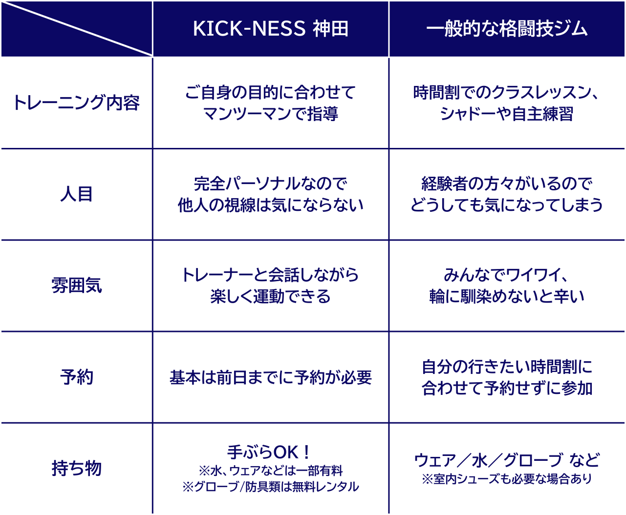 KICK-NESSでは、会員様が通い続けることができるように環境を整えています。