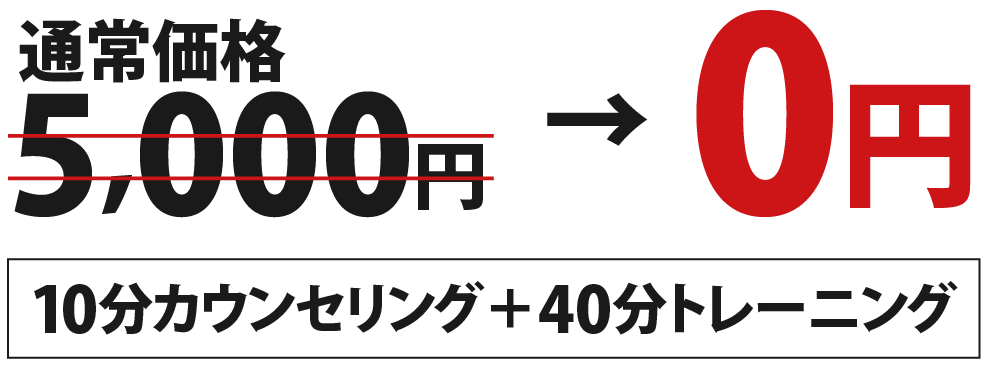 50分(カウンセリング10分+トレーニング40分) ※ご入会の案内も含めると60分ほどになります。 |